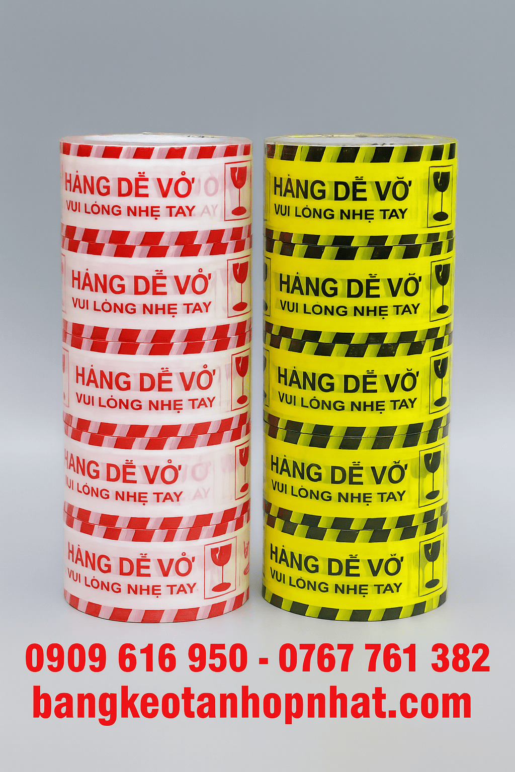 Đặc điểm nổi bật: in chữ đỏ nổi bật, dễ nhận biết, keo dính bền chắc, cuộn đều đẹp.